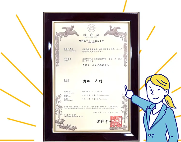 さまざまなやり方がある中で、自分に合う速読術を選ぶのは大変です。科学的根拠がない速読ノウハウも多数存在しています。 しかし、角田プロの速読スキルは厳しい審査基準をクリアし「学習支援プログラム」として特許に認定されました。読書スピードアップおよび記憶力の向上に対する科学的根拠への取り組みがない「その他の速読術」に比べて、あなたの能力アップに大きく貢献します。